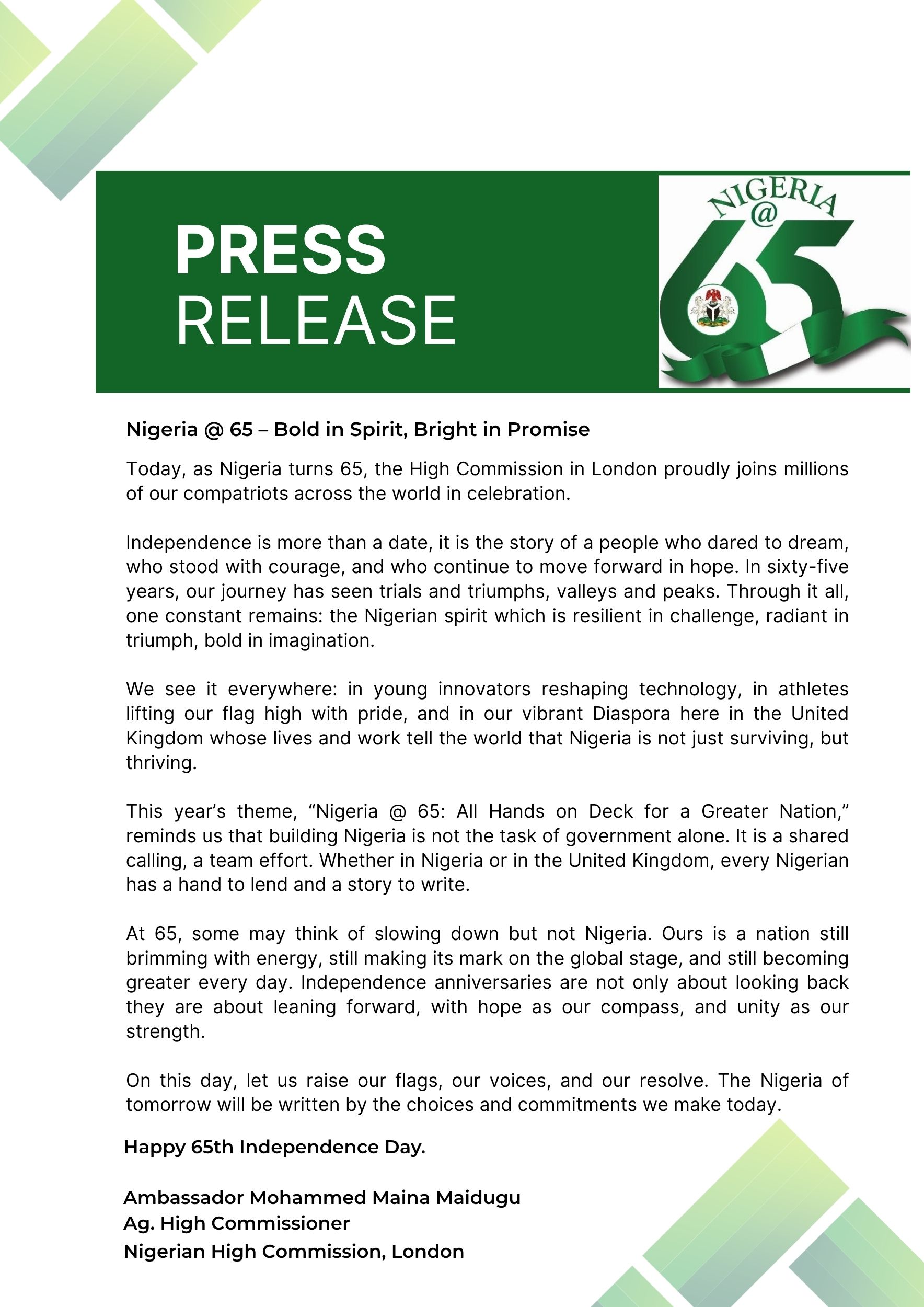 The work of the Nigeria High Commission is to co-ordinate, promote and protect the national interests of Nigeria within the United Kingdom in ways that contribute to the enhancement of Nigeria’s security and socio-economic prosperity.